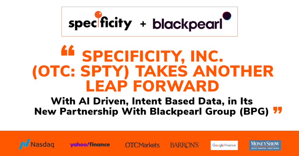 Nasdaq: “Specificity, Inc.(OTC: SPTY) Takes Another LeapForward With AI Driven, Intent Based Data, in Its New Partnership With Blackpearl Group (BPG)”
